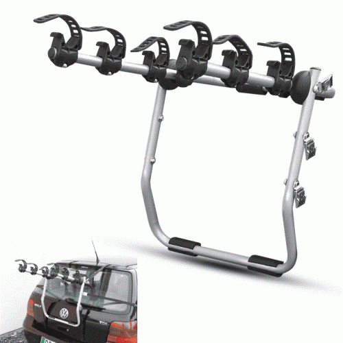 Rear mounted bike carrier MISTRAL, steel made, suitable for carrying three bikes. Quick and safe.