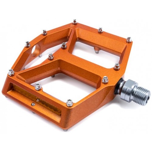 light flat pedal; aluminium body and CrMo axle; chamfered edges for improved cornering clearance; large contact surface; low-profile design; 12 anti-slip pins per side; LSL-Bushing; integrated reflectors
